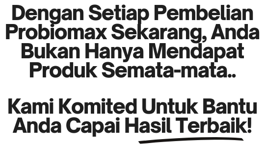 Ada! Kami bagi Moneyback Guarantee 2x ganda. Kalau ada masalah, terus hubungi team kami. Kami sedia bantu. 011-20794210 (Inmal Probiomax)